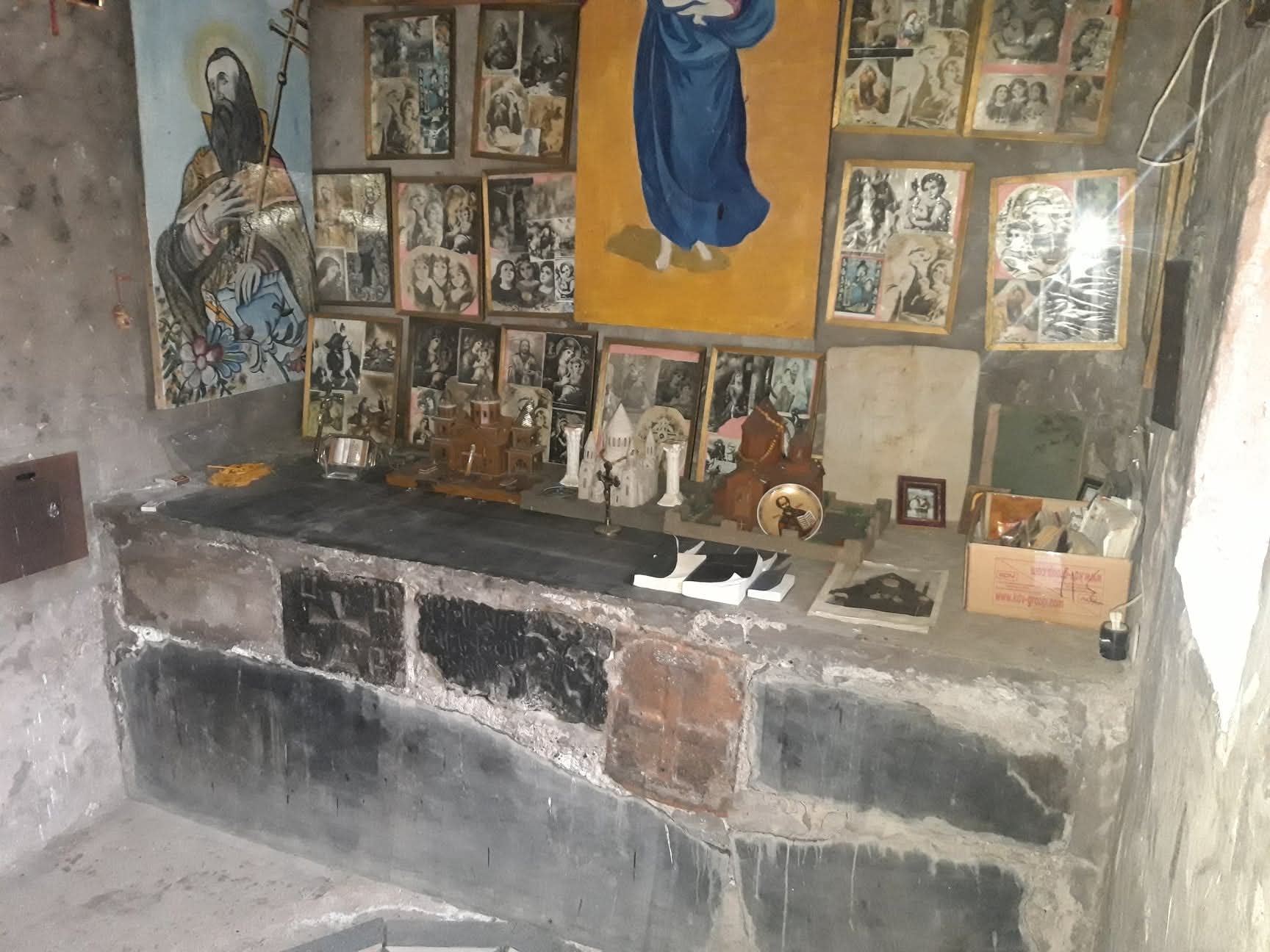 Մատուռի տարածքում կամ պատերի մեջ հաճախ կարելի է տեսնել միջնադարյան խաչքարերի բեկորներ, որոնք վկայում են տեղանքի հնության մասին։