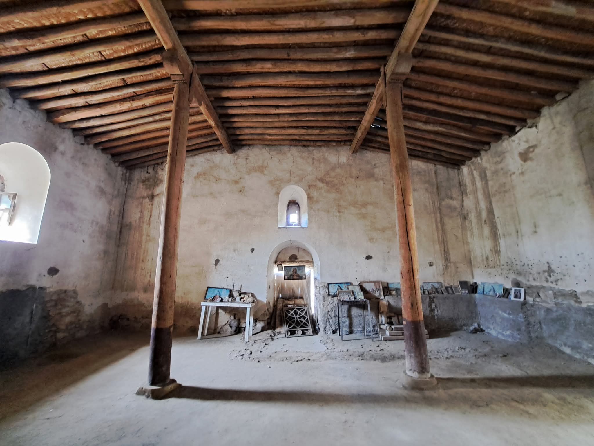 Եկեղեցու ներքին տարածքն առանձնանում է իր պարզությամբ, որտեղ տանիքը հենված է փայտյա սյուների վրա՝ պահպանելով գյուղական եկեղեցաշինության ավանդական շունչը։