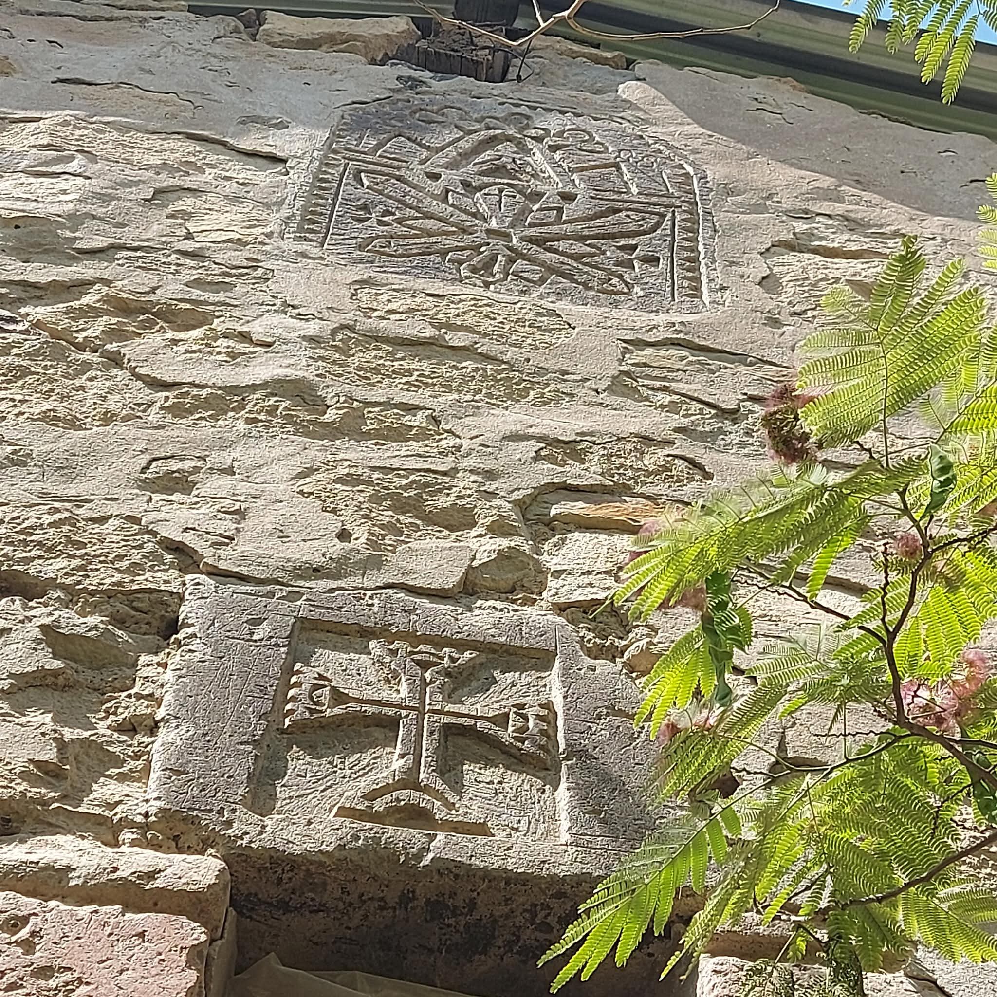 Շինության արտաքին պատերի մեջ ագուցված են տարբեր ժամանակաշրջանների խաչքարեր և քանդակազարդ բեկորներ, որոնք ոչ միայն հարստացնում են եկեղեցու տեսքը, այլև վկայում են տարածքում առկա ավելի հին քրիստոնեական շերտերի մասին։