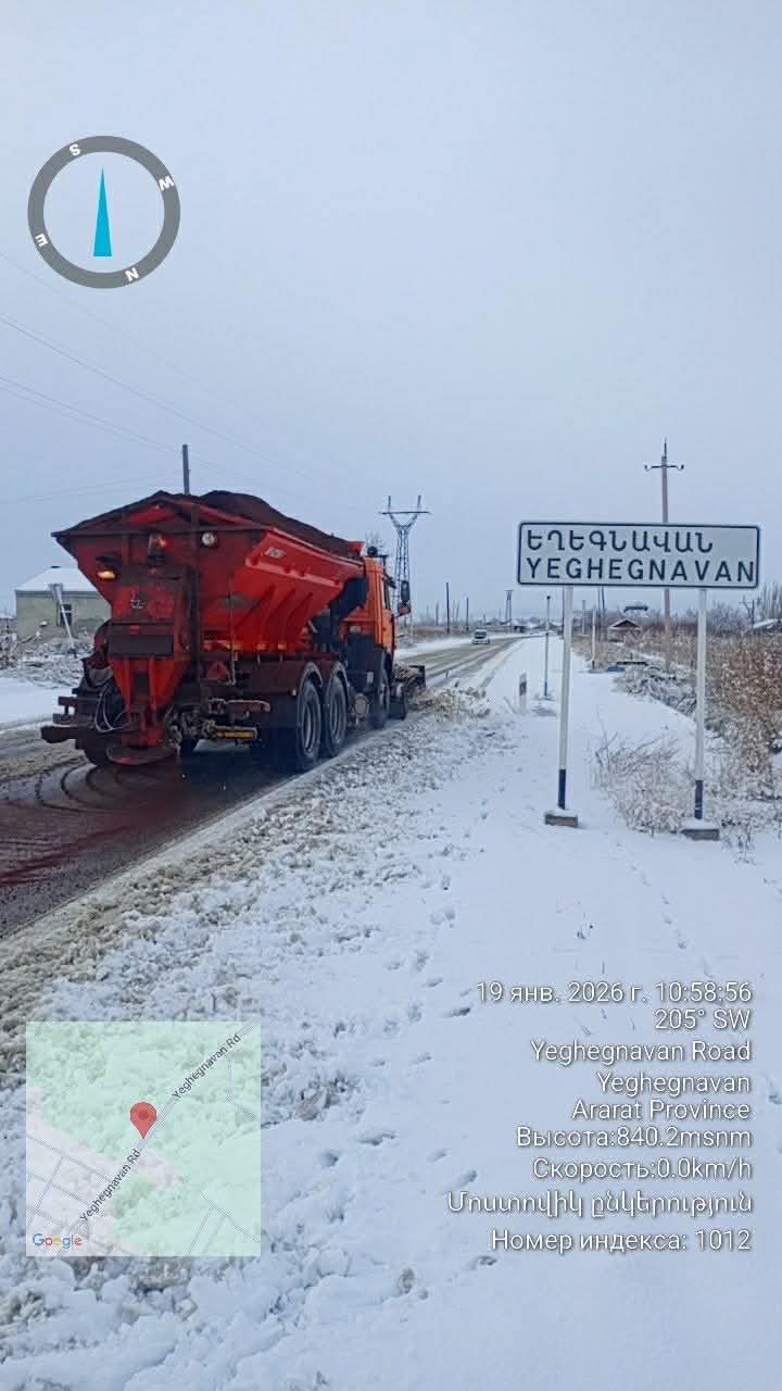 Արարատի մարզային նշանակության ավտոճանապարհներին գիշերային տեղումներից հետո ինտենսիվ իրականացվում են ձյան մաքրման և ավազով մշակման աշխատանքներ՝ ճանապարհային երթևեկության անվտանգությունն ապահովելու նպատակով։
