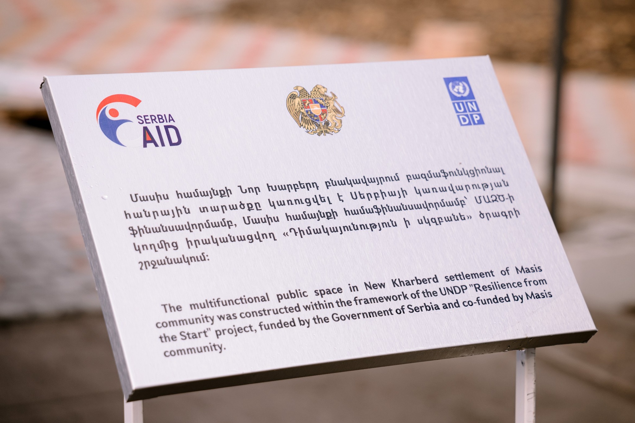 Անդրադառնալով ծրագրին, որի շրջանակներում կառուցվում է ամֆիթատրոնը՝ ՄԱԶԾ գենդերային հավասարության պորտֆելի ղեկավար Ժաննա Հարությունյանն ի մասնավորի նշեց, որ Հայաստանում ՄԱԿ-ի Զարգացման ծրագիրը (ՄԱԶԾ)՝ ՀՀ-ում Սերբիայի կառավարության և ՀՀ տարածքային կառավարման ու ենթակառուցվածքների նախարարության հետ համատեղ մեկնարկել է «Դիմակայունություն ի սկզբանե» ծրագիրը։ Ծրագրի շրջանակներում նախատեսվում է ՀՀ հինգ բազմաբնակավայր համայնքներում ներդնել կարիքահեն և ներառական համայնքային ոլորտային ծառայություններ՝ նոր տեսակի հանրային տարածքների նախագծման և կառուցման միջոցով։ Բազմաֆունկցիոնալ հանրային տարածքները պետք է նպաստեն Լեռնային Ղարաբաղի փախստականների և հյուրընկալող համայնքների բնակիչների միջև սոցիալական միասնականության ամրապնդմանը։