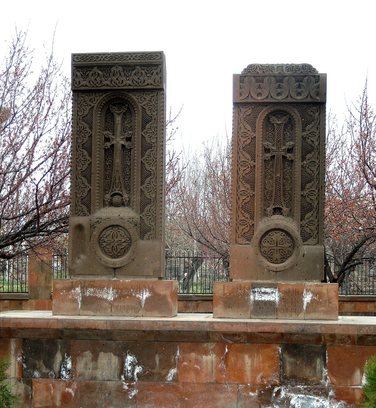 Համալիրի հոգևոր պատկերն ամբողջացնում են զույգ խաչքարերը, որոնք կանգնեցվել են ի հիշատակ 1915 թվականի Հայոց Ցեղասպանության զոհերի, ինչպես նաև 1988 թվականի Սպիտակի երկրաշարժի և Արցախյան հերոսամարտի նահատակների։
