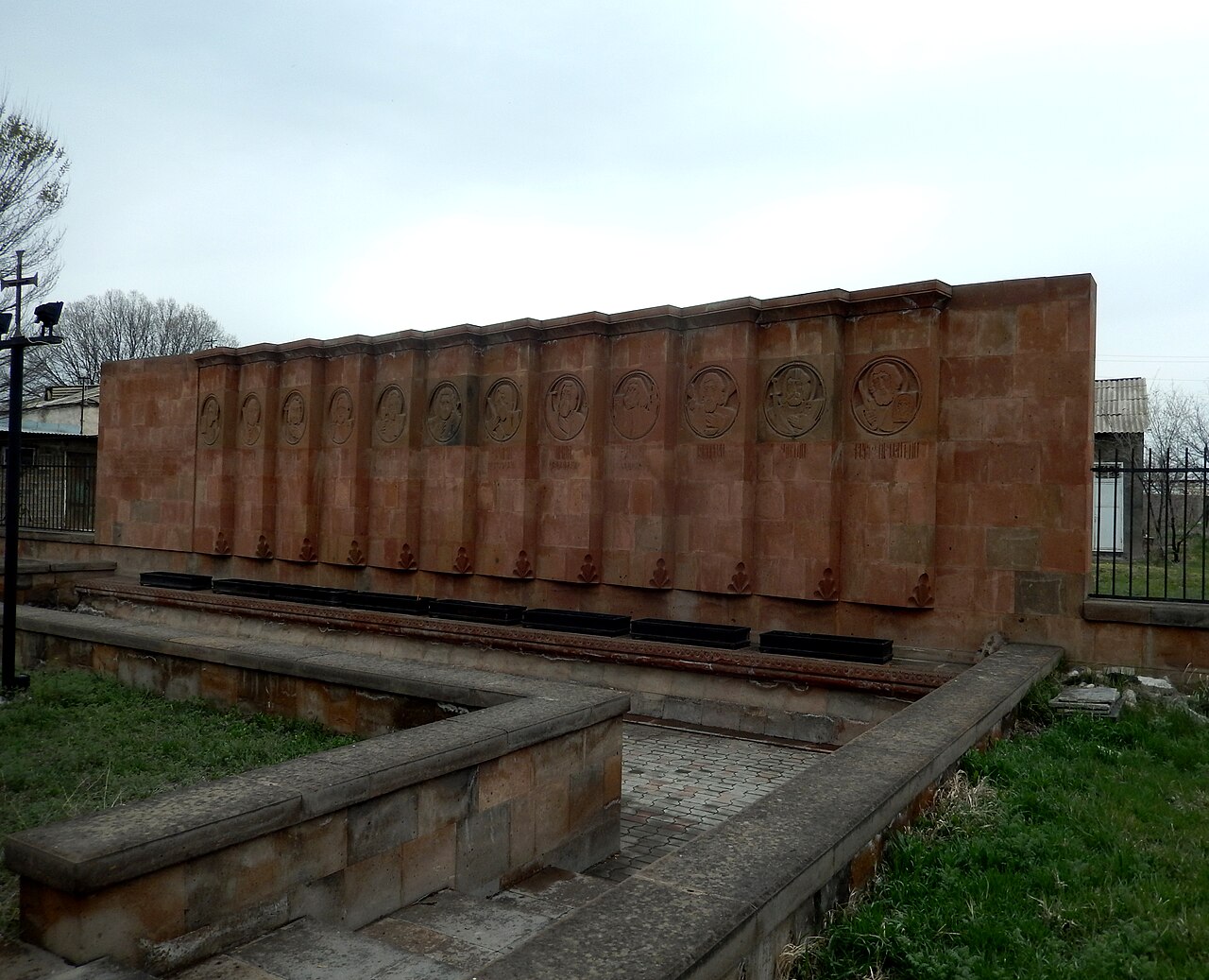 Տարածքում առանձնահատուկ տեղ է զբաղեցնում տուֆակերտ հուշապատը, որի վրա կլորավուն մեդալիոնների մեջ պատկերված են Հիսուս Քրիստոսի 12 առաքյալների բարձրաքանդակները՝ խորհրդանշելով եկեղեցու առաքելական հիմքերը։
